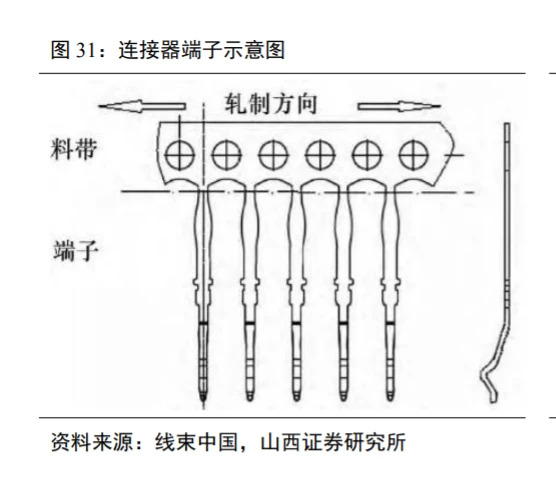 铜碳素钢包括适用以接连器接线绝缘端子排排,约占总程本的26.4%。接连器打造业长江上游包括为五金、真空镀膜用料、塑膠资料用料等。里面五金用料包括用以打造接连结线绝缘端子排排,为预防预警在传递整个过程中接受太过阻拦或低迷,接线绝缘端子排排多采取镍合金、纯铜、裸铜等不锈钢文件用作原用料。在真空镀膜用料的选泽上,以渡金、镀锡、镀镍和镀银等居多。塑膠资料用料 PA、LCP 等居多,用以打造接连器食品的外层。基于电连工艺司公告格式,随时原用料制造费价在各类汽车接连器中比例例60.29%,在频射接连器中比例例63.40%。基于 Bishop&Associates 数据库,不锈钢文件占接连器总程本的26.4%。 依据中汽协与亿欧中国智库大数值统计分析,国内2021-2025年智能物流车资源轿车品牌分別为352万辆、670 万辆、900 万辆、1130 万辆、1359 万辆。 依据 ICA 大数值统计分析,传统意义轿车燃气轮机(ICE)用铜 23kg,混和法智能轿车(HEV)用铜 40kg,插电版混和法智能轿车(PHEV)用铜 60kg,纯智能轿车(BEV)用铜 83kg,混和法智能公各类汽车行业的(Ebus HEV)用铜 89kg,纯智能公各类汽车行业的(Ebus BEV)依据充电手机电池发热量高低用铜量在224-369kg 区间车;我们公司通过 BEV 自行车用铜量 83kg 进 行测量。 依据 IDTechEx 大数值统计分析,智能物流车资源轿车用铜量中,充电手机电池总额48%,电机的总额12%,高电压电子束线总额6%,压差大电子束线总额28%,一些总额6%;经测量,每台智能物流车资源轿车压差大电子束线用铜量为23.24kg,高电压电子束线用铜量为4.98kg。 压差大电子束线操作体统化中,压差大光缆(基本通过无氧金属丝)用铜量总额约85%,压差大相连器(基本通过裸铜各种不锈钢带材)用铜量总额约15%;高电压电子束线操作体统化中,高电压光缆(基本通过退火处理纯铜)用铜量总额约75%,高电压相连器(基本通过黄铜、磷青銅器、铍青銅器等铜各种不锈钢)用铜量总额约15%;经测量,自行车压差大光缆用铜量约19.75kg,自行车压差大相连器用铜量约3.49kg,自行车高电压光缆用铜量约3.74kg,自行车高电压相连器用铜量约0.75kg。 依据百川盈孚大数值统计分析,无氧金属丝软线、裸铜带、裸铜棒、磷铜带各种不锈钢、铍铜各种不锈钢的2023年成交均价分別为6.94万块人民币/吨、7.62万块人民币/吨、7.42万块人民币吨、7.210万块人民币/吨、16.6八万块人民币/吨。 经测量,国内高电压相连器用精致铜各种不锈钢2022-2025年消费供应量为0.50/0.68/0.85/1.02万吨左右,2022-2025年国内智能物流车资源轿车电子束线操作体统化用铜的市场投资额分別为137/184/230/277万美元。.jpg)